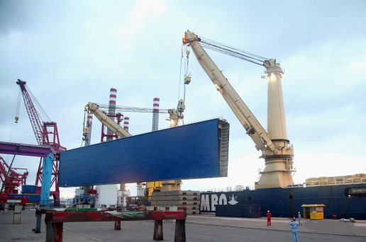 海西重機從設計研發、生產管理、質量控制、風險管控等方面高標準高質量嚴格把控,對設備性能、安全性、使用維護等全面精心設計審核,對尺寸、精度、外觀、安裝接口位置等精準控制,得到業主及駐廠意大利船級社監理的認可。考慮到用戶現場無大型起重設備,此次發運采用具有2臺900噸克令吊的重吊船進行作業,滿足了所有吊裝和運輸要求,不僅節約了項目成本,而且提高了裝卸船的工作效率。