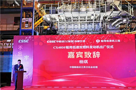 4月2日,我國首臺自主研發全球最小缸徑雙燃料低速發動機(CX40DF)在江蘇鎮江中船動力有限公司隆重舉行交機儀式,該首臺機由中國船舶集團有限公司旗下中船動力(集團)有限公司牽頭自主研發,在正式出廠交付廣州文沖船廠有限責任公司后,將安裝到天津西南海運有限公司建造的9500立方米多用途氣體運輸船上,標志著我國附加產值高的低速機研制從此進入自立自強的時代。