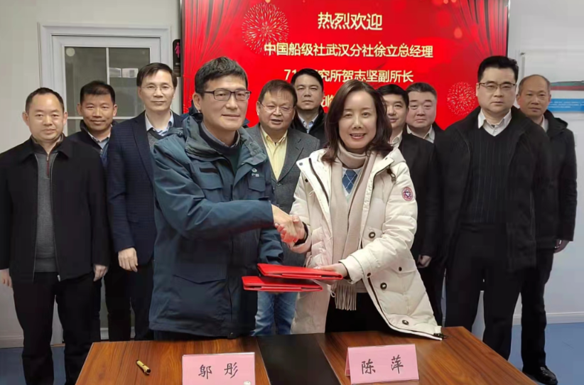中國船級社武漢分社總經理徐立、創新江海和創遠海運董事長袁厚安、七一一所副所長賀志堅等共同參加簽約儀式。