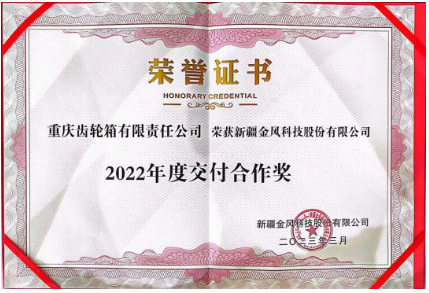 重齒公司同金風科技自1996年來開始全方面合作,已經攜手走過26年,近年來重齒公司偏航變槳齒輪箱在精益生產,質量提升,售后響應,降本增效等多方面全面提升,伴隨金風科技的步伐不斷成長。該獎項既是金風科技對重齒公司2022年的商務合作、產品交付、售后服務等多方面表現給予的充分認可,也是對雙方2023年乃至后續進一步合作寄托美好的愿景。