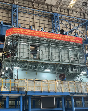 2024年8月9日,中國船舶集團旗下中國動力子公司中船動力(集團)有限公司下屬上海中船三井造船柴油機有限公司順利交付了國內首臺7G80ME-C10.5-GI-HPSCR 雙燃料發(fā)動機。建造期間,中船三井廣大干部職工“戰(zhàn)高溫”、“斗難題”,秉承艱苦奮斗的精神,用精湛的技術確保了發(fā)動機的高質量交付。后續(xù)該機將被安裝于大連中遠海運川崎船舶工程有限公司為船東MOL建造的30.9萬噸油輪上。