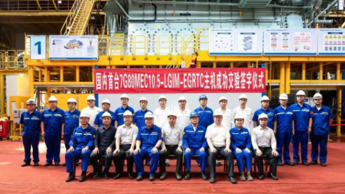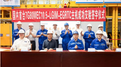 7月4日,國內首臺7G80MEC-LGIM-EGRTC甲醇雙燃料船用低速機交機儀式在中船集團旗下中國動力子公司中船發(fā)動機大柴公司成功舉行。該主機將安裝在大連船舶重工集團有限公司為招商輪船所屬海宏輪船(香港)有限公司建造的全球首艘甲醇雙燃料動力智能VLCC(30.6萬噸超大型油輪)上。海宏香港副總經理李偉平、大連造船副總經理何旭、中國船級社大連分社副總經理劉鐵波,大柴公司黨委書記、執(zhí)行董事李萬勝等出席交機儀式。
