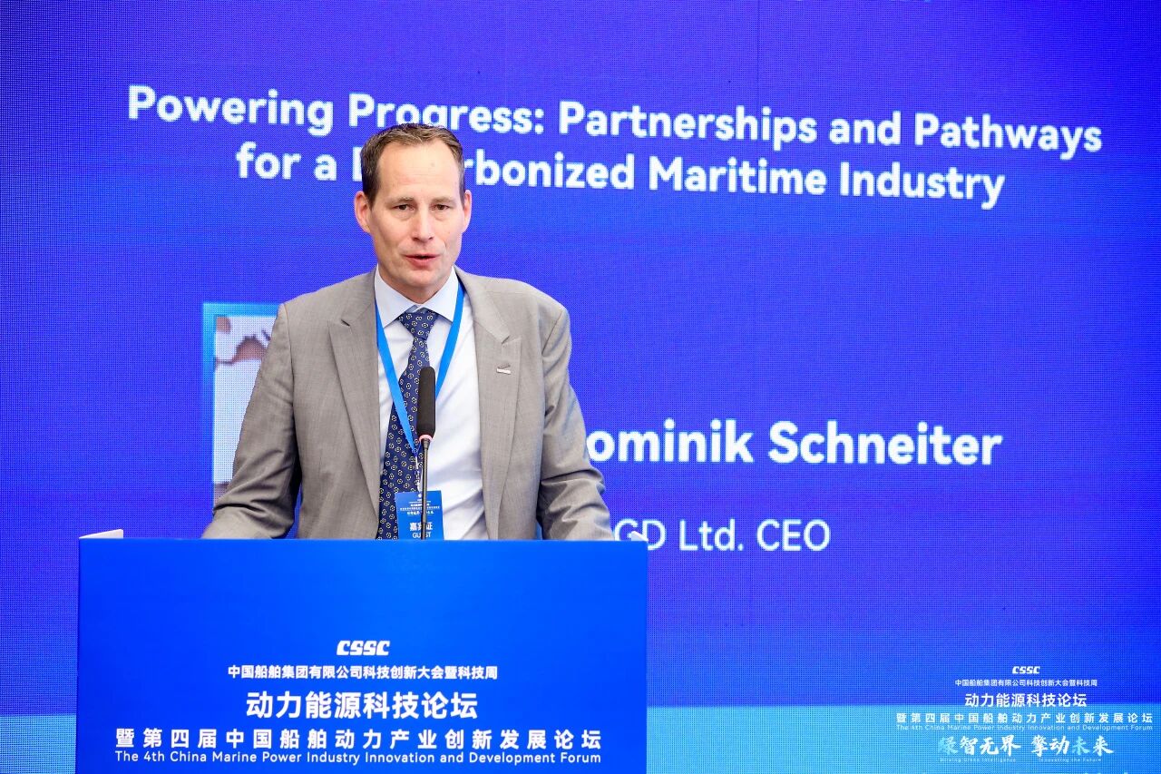 WinGD公司 CEO Dominik Schneiter 分享了國際海事產業脫碳合作的實踐路徑,強調航運業脫碳需通過多燃料戰略、全生命周期解決方案與跨界協作實現,并介紹了 WinGD X-DF 發動機平臺在氨、甲醇等替代燃料應用中的領先成果,以及與產業鏈伙伴協同推動技術落地的經驗。