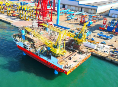 近日,中國動力子公司中船武漢船機(jī)自主設(shè)計建造的JANA 510海上自升式作業(yè)支持平臺在青島海西重機(jī)碼頭完成下水站樁的關(guān)鍵建造節(jié)點,這標(biāo)志著該平臺的主體結(jié)構(gòu)已全部完工。
