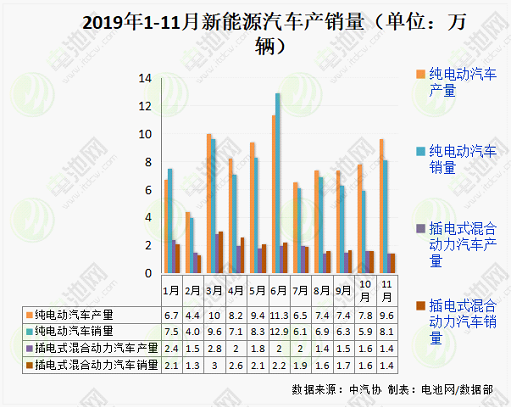 補貼過渡期以后,2019年新能源汽車產銷自7月以來,連續5個月同比下跌。中汽協數據顯示,今年7-9月,新能源汽車銷量分別為8萬輛、8.5萬輛和8萬輛,同比分別下降4.7%、15.8%和34.2%;到了10月和11月,銷量分別為7.5萬輛和7.2萬輛,同比下降幅度更是擴大至45%以上。新能源汽車產銷的大幅下降,對鈷市行情利空,鈷后市需求預期下降,鈷行情利空。