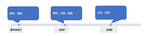 各省市鋰鹽廠開工按時間統(tǒng)計情況