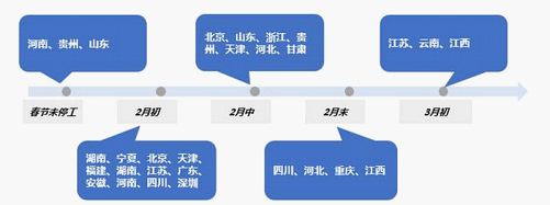 各省市電池廠開工按時間統(tǒng)計情況