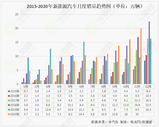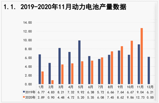 11月,新能源汽車產銷分別完成19.8萬輛和20萬輛,同比分別增長75.1%和104.9%,其單月產銷第5次刷新了當月歷史記錄。11月,我國動力電池裝車量10.6GWh,同比上升68.8%,環比上升80.9%,增長幅度較大。