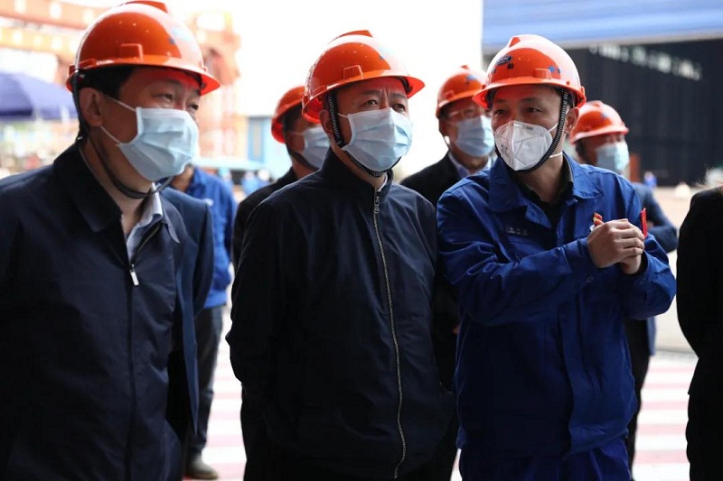 ????王江平一行深入車間實地考察了重點在制產品生產情況,認真聽取了武船集團積極參與疫情防控、有序推進復工復產和疫情影響等方面的情況匯報。