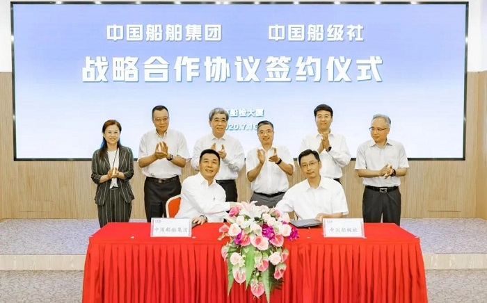 7月10日,中國船舶集團有限公司與中國船級社在京簽訂戰略合作協議。中國船舶集團黨組書記、董事長雷凡培,黨組成員、副總經理杜剛,中國船級社總裁莫鑒輝,副總裁朱愷、范強出席簽約儀式。中國船舶集團黨組成員、副總經理孫偉,中國船級社副總裁孫峰分別代表雙方在協議上簽字。簽約后,雙方圍繞共同服務國家戰略,就進一步加強交流合作、促進優勢互補、實現共贏發展進行了深入交流。