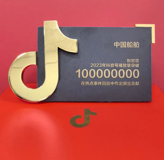 “中國船舶”抖音自2022年3月正式開通以來,粉絲數突破100萬大關。截至2023年12月,“中國船舶”抖音總播放量約5.8億,播放量破100萬視頻50條、破1000萬視頻7條、單條最高5200萬,爆款視頻10余條,多次成為社會性熱點新聞,全網轉發。在2023年國資小新發布的新媒體指數月度排行榜中,抖音平臺兩次排名第一。