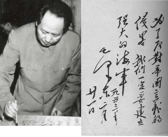 1953年,毛澤東同志視察“長(zhǎng)江”艦,在艦上揮毫寫(xiě)下“為了反對(duì)帝國(guó)主義的侵略,我們一定要建立強(qiáng)大的海軍”。