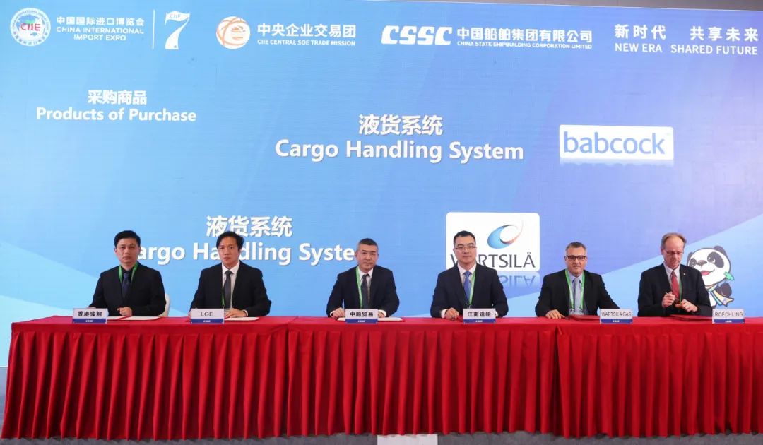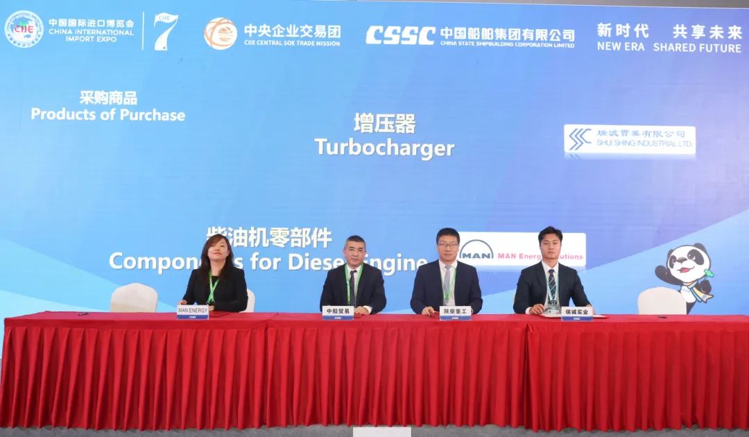 中國船舶集團有限公司黨組成員、副總經理盛紀綱應邀參加第七屆進博會暨虹橋國際經濟論壇開幕式,出席11月6日下午舉行的第七屆進博會國資委中央企業交易團中國船舶交易分團采購集中簽約儀式并致辭。