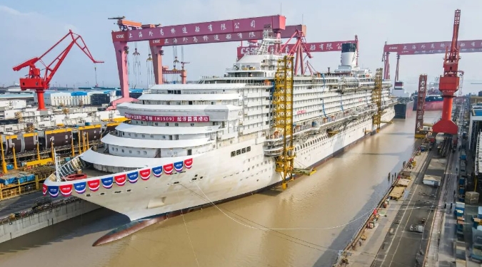 “愛達·花城號”由中船集團旗下外高橋造船于2022年8月開工建造,去年4月入塢搭載,今年1月實現全船貫通?!皭圻_·花城號”長341米、寬37.2米、約14.19萬總噸,相比首艘國產大型郵輪“愛達·魔都號”體量更大、建造物量更多,對設計建造管理能力提出了更高要求。目前,“愛達·花城號”整體建造進度已超過70%,比“愛達·魔都號”起浮時總進度提前12%,結構總裝周期縮短至9個月,標志著我國大型郵輪建造技術邁上了新臺階。