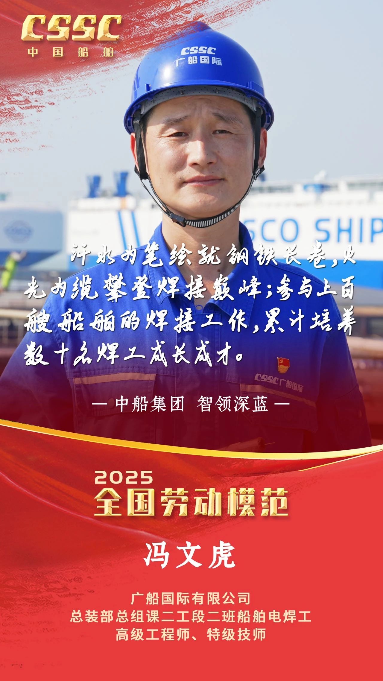 4月28日上午,慶祝中華全國總工會成立100周年暨全國勞動模范和先進(jìn)工作者表彰大會在人民大會堂隆重舉行。大會宣讀了《中共中央、國務(wù)院關(guān)于表彰全國勞動模范和先進(jìn)工作者的決定》。中船集團(tuán)5人被授予全國勞動模范稱號,4人被授予全國先進(jìn)工作者稱號。