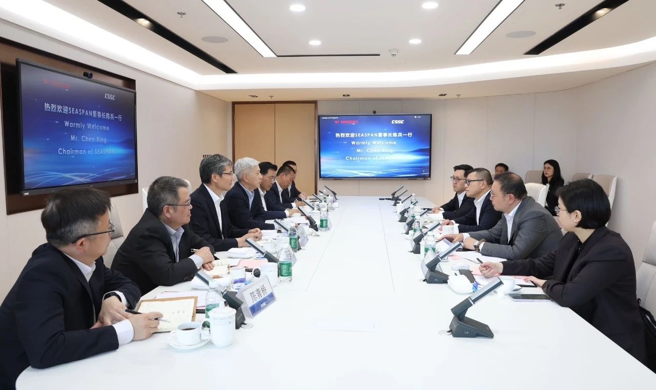 徐鵬對陳兵一行的來訪表示歡迎,并感謝Seaspan公司對中船集團的長期信任與支持。徐鵬表示,中船集團將持續(xù)提升自身綜合能力,努力為客戶提供更優(yōu)質(zhì)的產(chǎn)品和服務。Seaspan公司是全球最大的獨立集裝箱船租賃船東公司,與中船集團在長期合作中結下了深厚友誼。未來,希望雙方建立常態(tài)化溝通交流機制,在船舶建造與升級改造、國際船海市場拓展、船舶全生命周期運維、綠色能源開發(fā)等方面持續(xù)深化進一步合作,共同為行業(yè)持續(xù)健康發(fā)展作出應有貢獻。