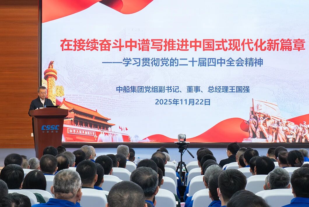 黨組成員在宣講會上強調(diào),學(xué)習(xí)好貫徹好黨的二十屆四中全會精神是當(dāng)前和今后一個時期的重大政治任務(wù)。要更加緊密地團結(jié)在以習(xí)近平同志為核心的黨中央周圍,全面貫徹習(xí)近平新時代中國特色社會主義思想,把思想和行動統(tǒng)一到黨中央對形勢的科學(xué)判斷和決策部署上來,狠抓各項工作落實。要堅持創(chuàng)新驅(qū)動,抓住新一輪科技革命和產(chǎn)業(yè)變革歷史機遇,加快推進高水平科技自立自強;要加快提質(zhì)升級,堅持智能化、綠色化、融合化方向,爭當(dāng)建設(shè)現(xiàn)代化產(chǎn)業(yè)體系的排頭兵;要全面深化改革,進一步解決制約高質(zhì)量發(fā)展的卡點堵點問題,持續(xù)增強發(fā)展動力和活力;要強化根魂優(yōu)勢,堅持和加強黨的領(lǐng)導(dǎo)、黨的建設(shè),以高質(zhì)量黨建引領(lǐng)保障高質(zhì)量發(fā)展,確保2025年和“十四五”規(guī)劃目標(biāo)任務(wù)完成、“十五五”良好開局,為以中國式現(xiàn)代化全面推進強國建設(shè)、民族復(fù)興偉業(yè)貢獻(xiàn)中船力量。